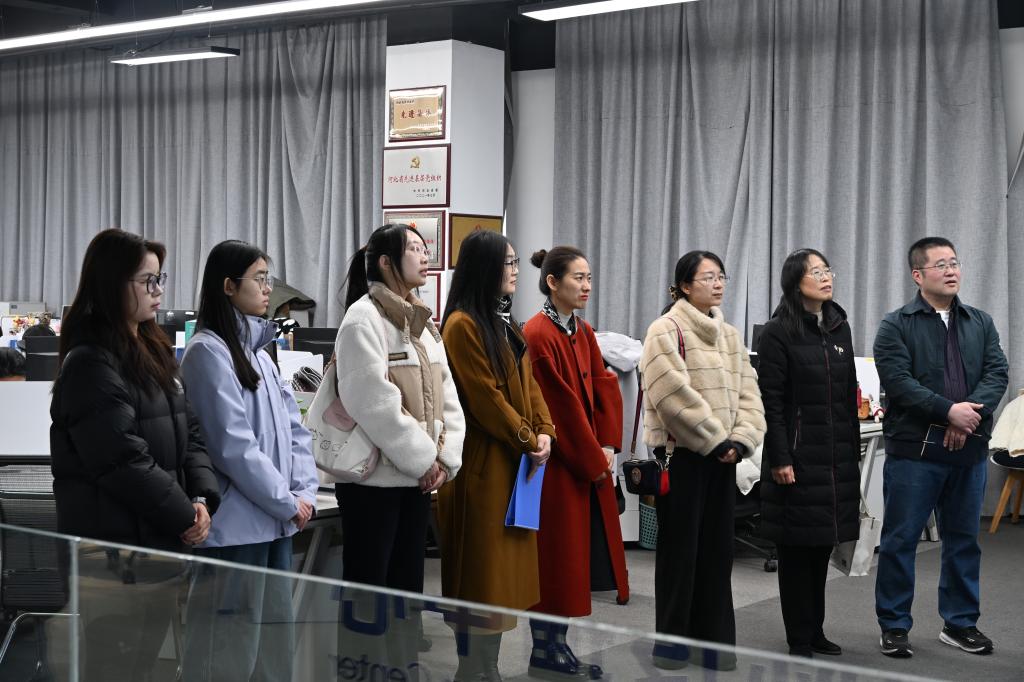 师生一行在长城智媒研究院相关负责人的陪同下参观企业,深入了解“学习强国”学习平台的发展历程、建设成果与运营理念,深切体会到平台在思想引领、知识传播、服务群众方面的重要作用。随后,师生们走进XR演播室、访谈演播室,详细了解融媒体节目制作的技术应用、流程规范与创新模式,近距离感受智媒时代媒体行业的发展趋势,为后续校企深度合作筑牢基础。