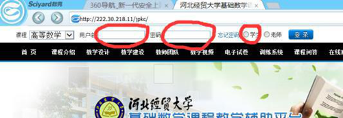 //222.30.218.11/jpkc, 用户名和密码默认为学号,勾选“学生”,点击登陆;